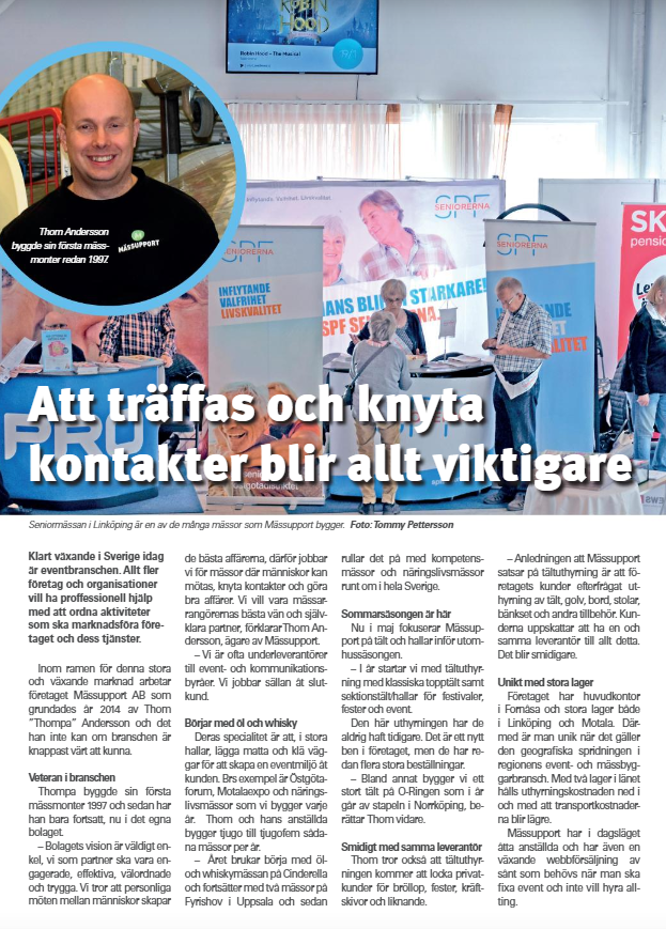 – Ja, flera. Bland annat har vi två stora mässor under våren, Motala Expo i mars och Näringslivsdagarna på Stadium Arena i Norrköping i mitten av maj, som vi är helhetsleverantörer till.