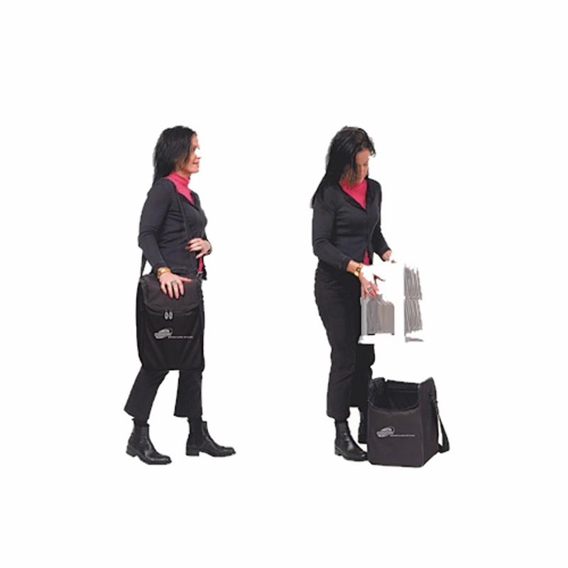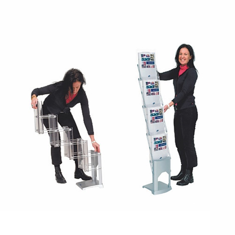 Vårt 4-Facks broschyrställ som levereras i en smidig väska, stället fälls upp på "nolltid" och lika enkel och snabbt att plocka undan efter mässan.