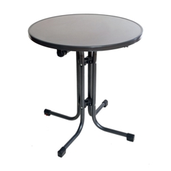 Smidigt hopfällbart cafébord med svart stålstativ och bordskiva i antracitgrå laminat.