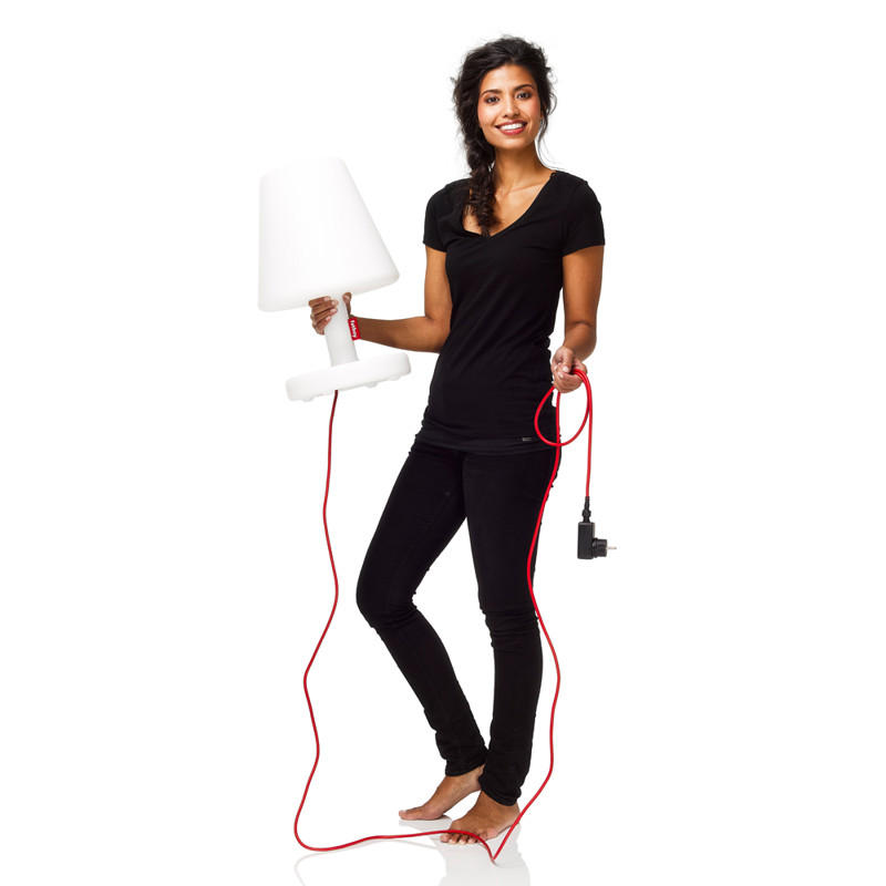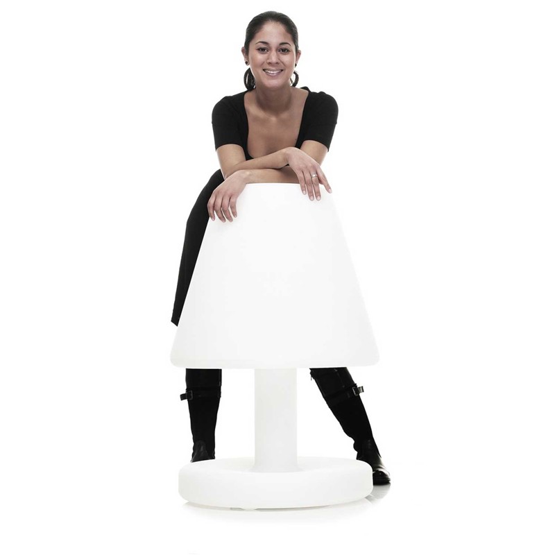 Golvlampan Edison the Giant är en jättestor golvlampa med en vit skärm i plast och en vit fot i pulverlackat stål. Inne eller ute, kallt eller varmt ljus, The Giant passar in på såväl event och expo.