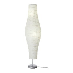 Duderö är en golvlampa med vit skärm i rispapp med ljusgrå fot.