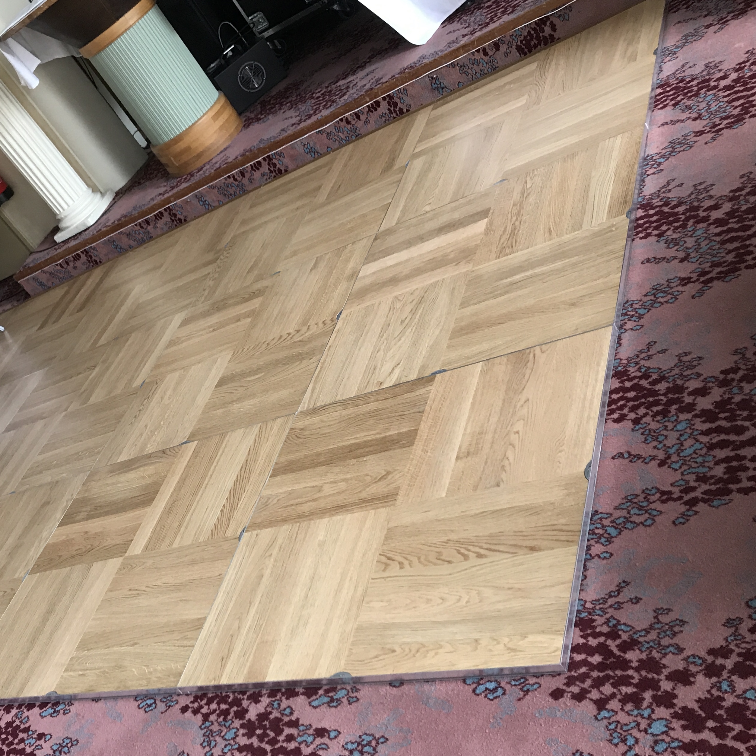 Vårt mobila Dansgolv i stavlimmad ek som med fördel även kan läggas i andra sammanhang t.e.x. i er mässmonter, inga verktyg krävs vilket ger en snabb och enkel montering.