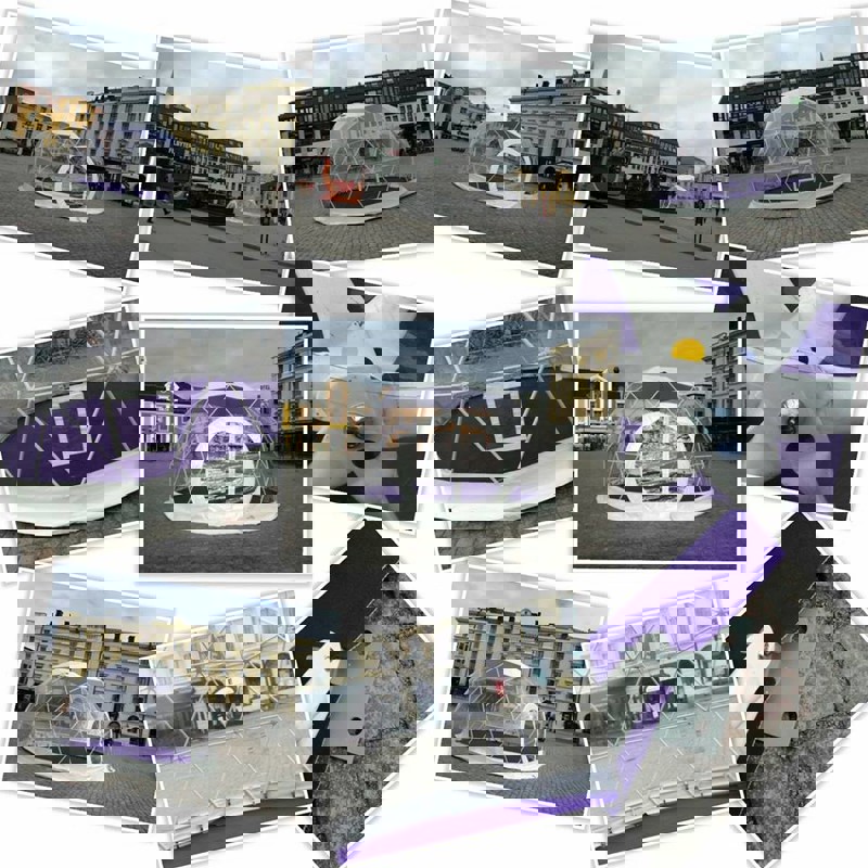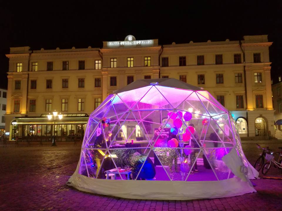 Polidome finns i totalt 8st olika storlekar och vi är intresserade av att äga flera och större, så har du något event eller mässa där ni vill skilja er från mängden så tveka inte att kontakta oss. Den största är 30m i diameter och har över 700kvm yta.