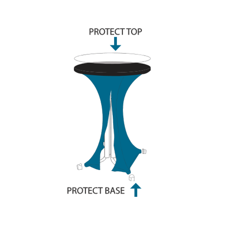 Våra bästa bordsöverdrag i stretch för ståbord har 20% elastan och 80% polyester vilket ger den allra bästa midjan. Överdragen finns med ett topp-överdrag för att du ska kunna förlänga livslängden på överdragen eller om du vill använda dig av olika färgkombinationer.