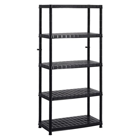 En hylla av plast med 5 hyllplan, går att montera ner vid fr…