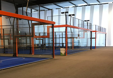 Översikts bild på padelhall med ljuddämpande tyg och matta